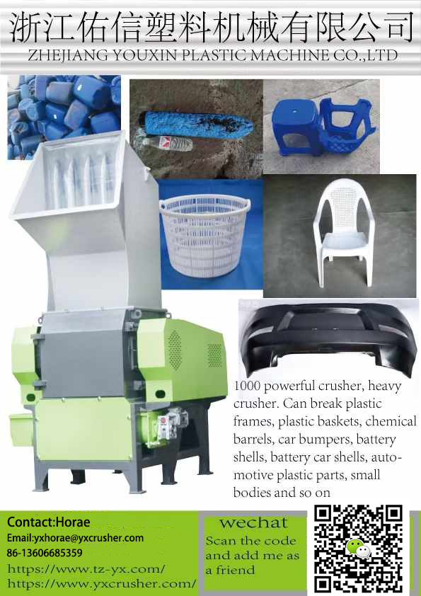 ইউক্সিন সংস্থা বিস্তৃত প্লাস্টিকের ক্রাশার সরবরাহ করে। স্ট্যান্ডার্ড প্লাস্টিকের ক্রাশার রয়েছে যা সাধারণ প্লাস্টিকের ক্রাশিং চাহিদা পূরণ করে; প্লাস্টিকের পালভারাইজারগুলি যা প্লাস্টিকগুলিকে সূক্ষ্ম কণায় গ্রাইন্ড করতে পারে; এবং আরও চ্যালেঞ্জিং প্লাস্টিকের উপকরণগুলির জন্য উপযুক্ত উচ্চ-শক্তি ক্রাশার। এছাড়াও, তারা নির্দিষ্ট আইটেমগুলির জন্য যেমন ফলের ঝুড়ি, ফিল্ম-টাইপ প্লাস্টিকের জন্য ডেডিকেটেড ক্রাশার এবং এমনকি টন ব্যাগের জন্য বড় টিয়ারিং মেশিনগুলির জন্য বিশেষ ক্রাশার তৈরি করেছে, যা বাল্ক প্লাস্টিকের প্যাকেজিং পরিচালনা করার জন্য ব্যবহৃত হয়।